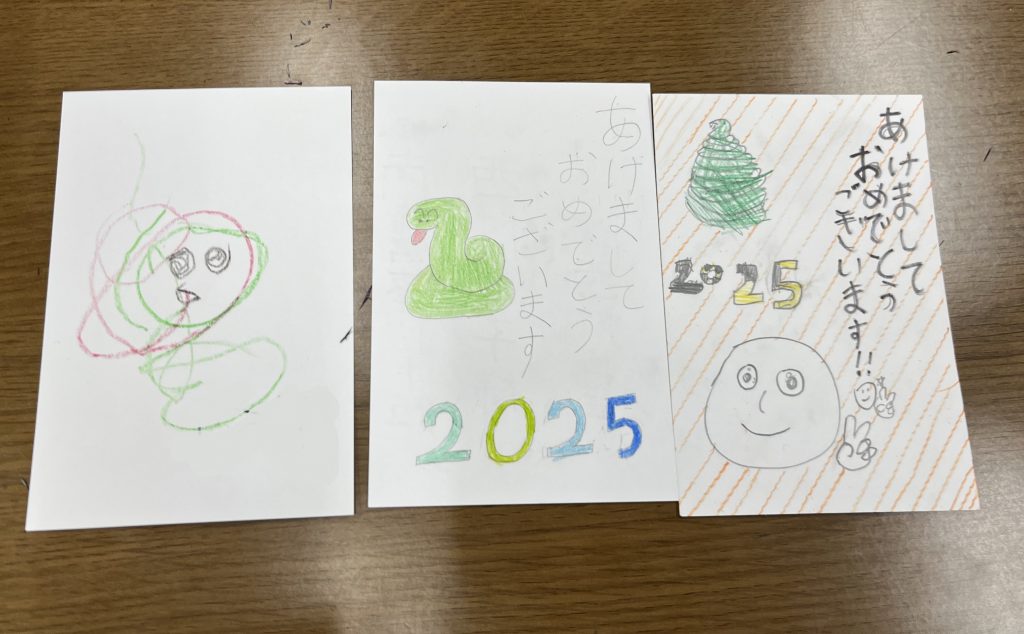 はがきの裏に上手に絵を描いたり、新年の挨拶を書いていきましょう!