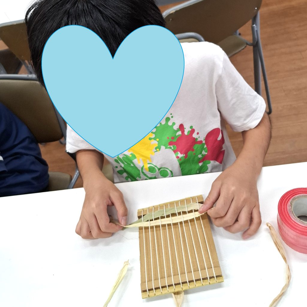 そこに数日乾かしたトウモロコシの皮を上下順番に織り込んでいきます!