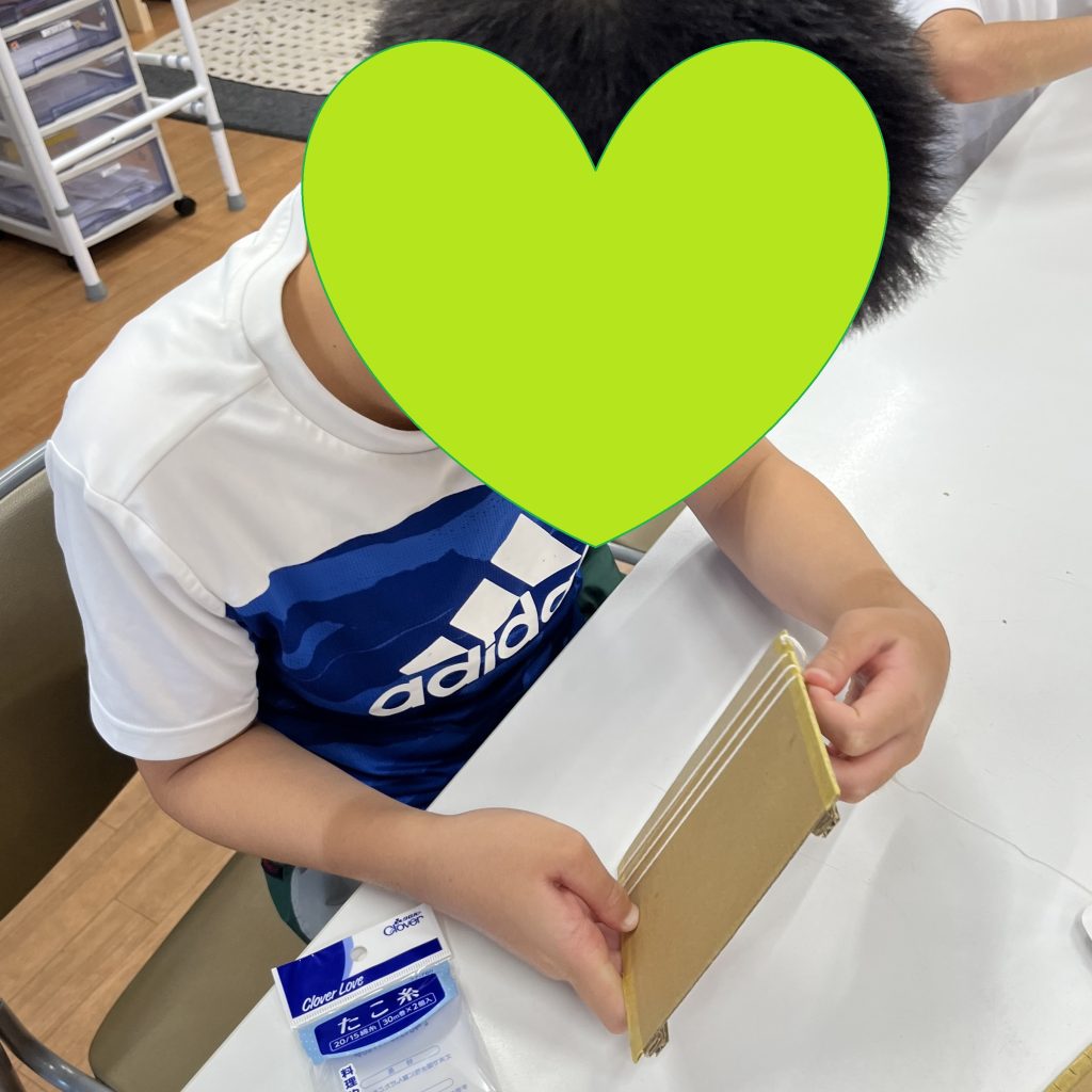 コースターサイズの段ボールにタコ糸を巻き付けて完成🎵