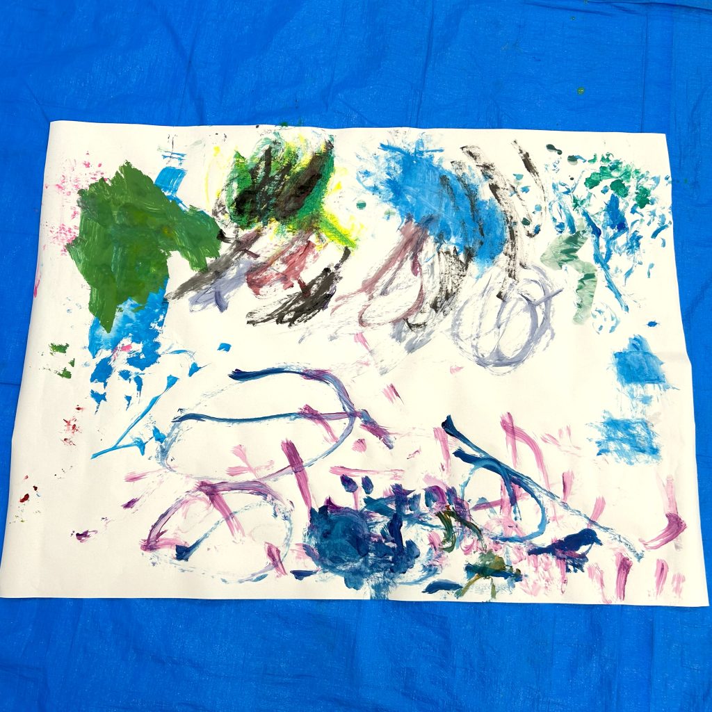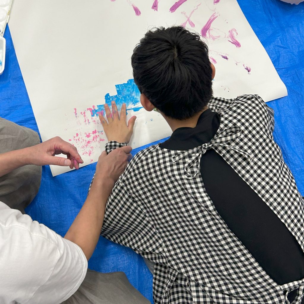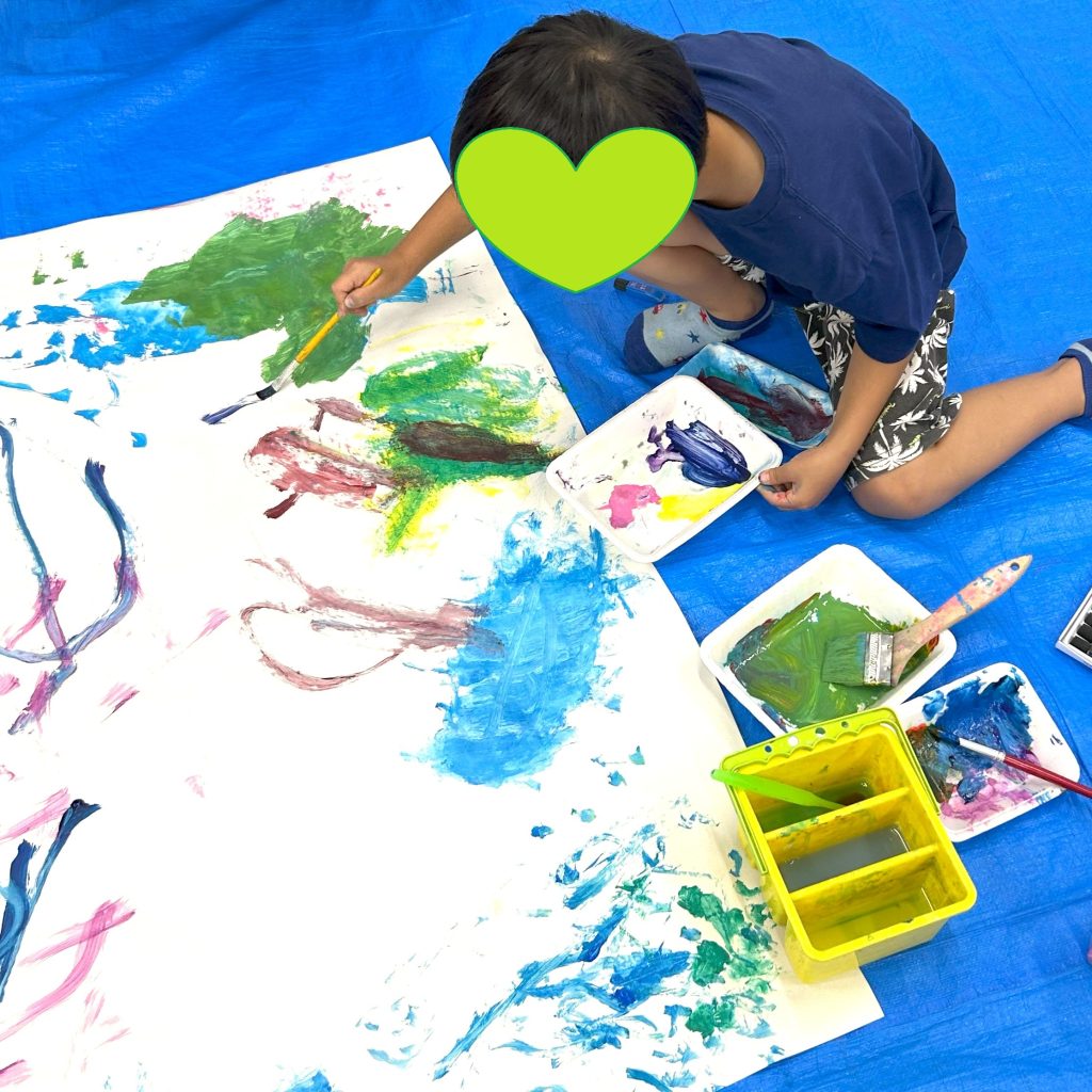 好きな色の絵の具を大胆に塗ってみたり、