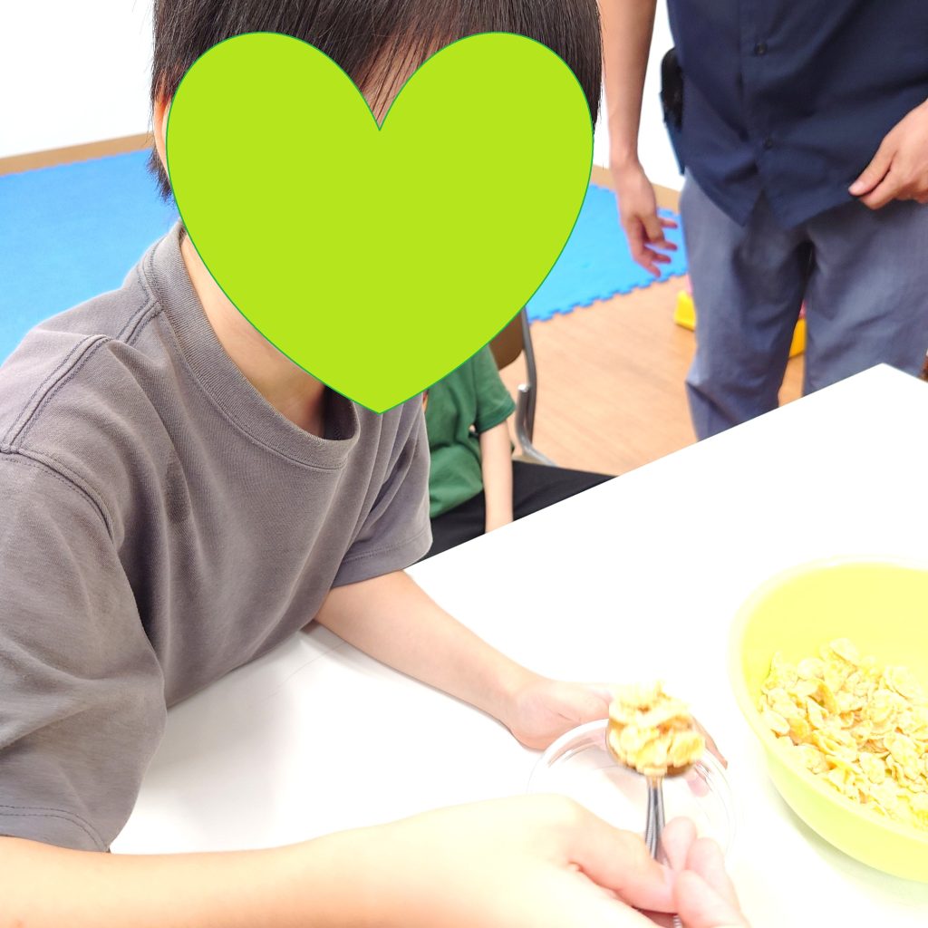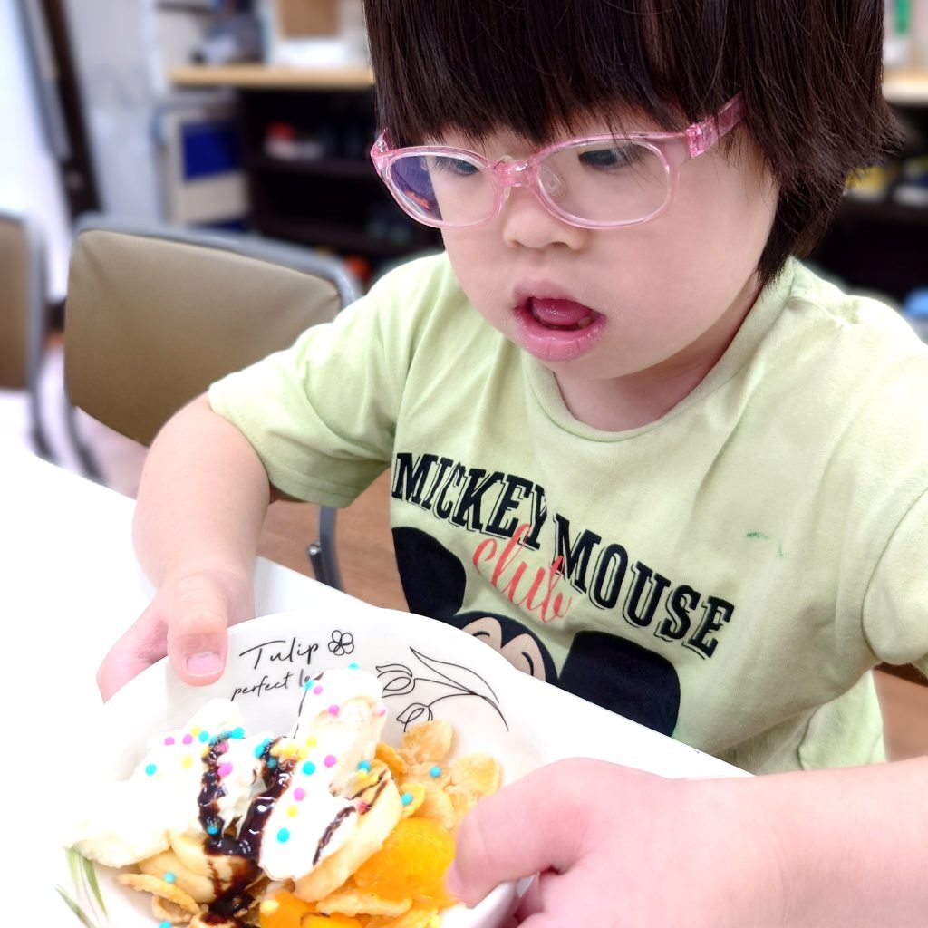 コーンフレークや果物、アイス、ホイップクリームなど、いるかいらないかを自分で決めて、カップに入れていきます!