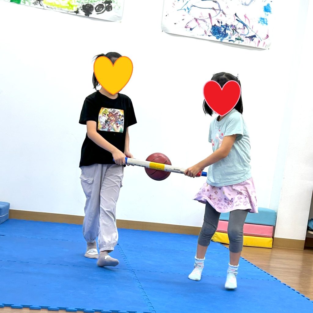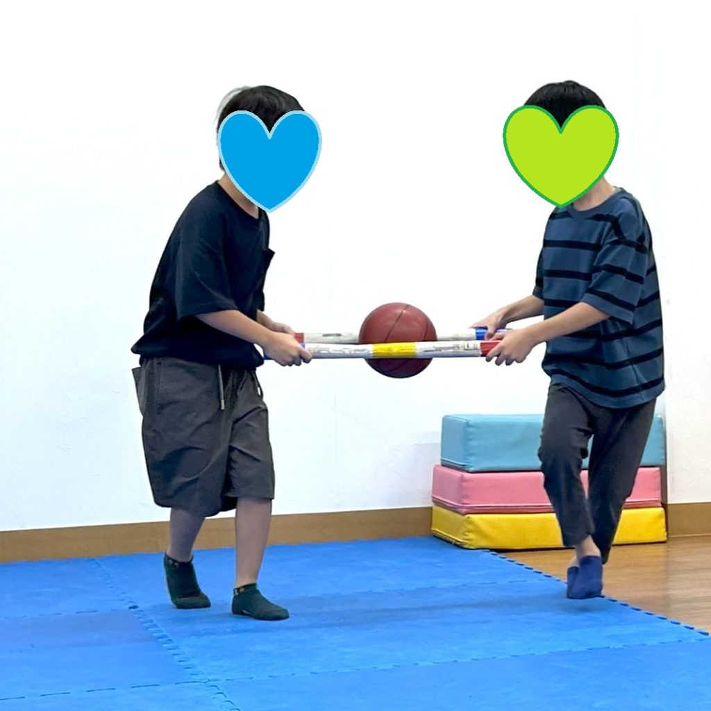 2人で行う為、片方の力強かったり弱かったりするとボールが落ちてしまいます⤵