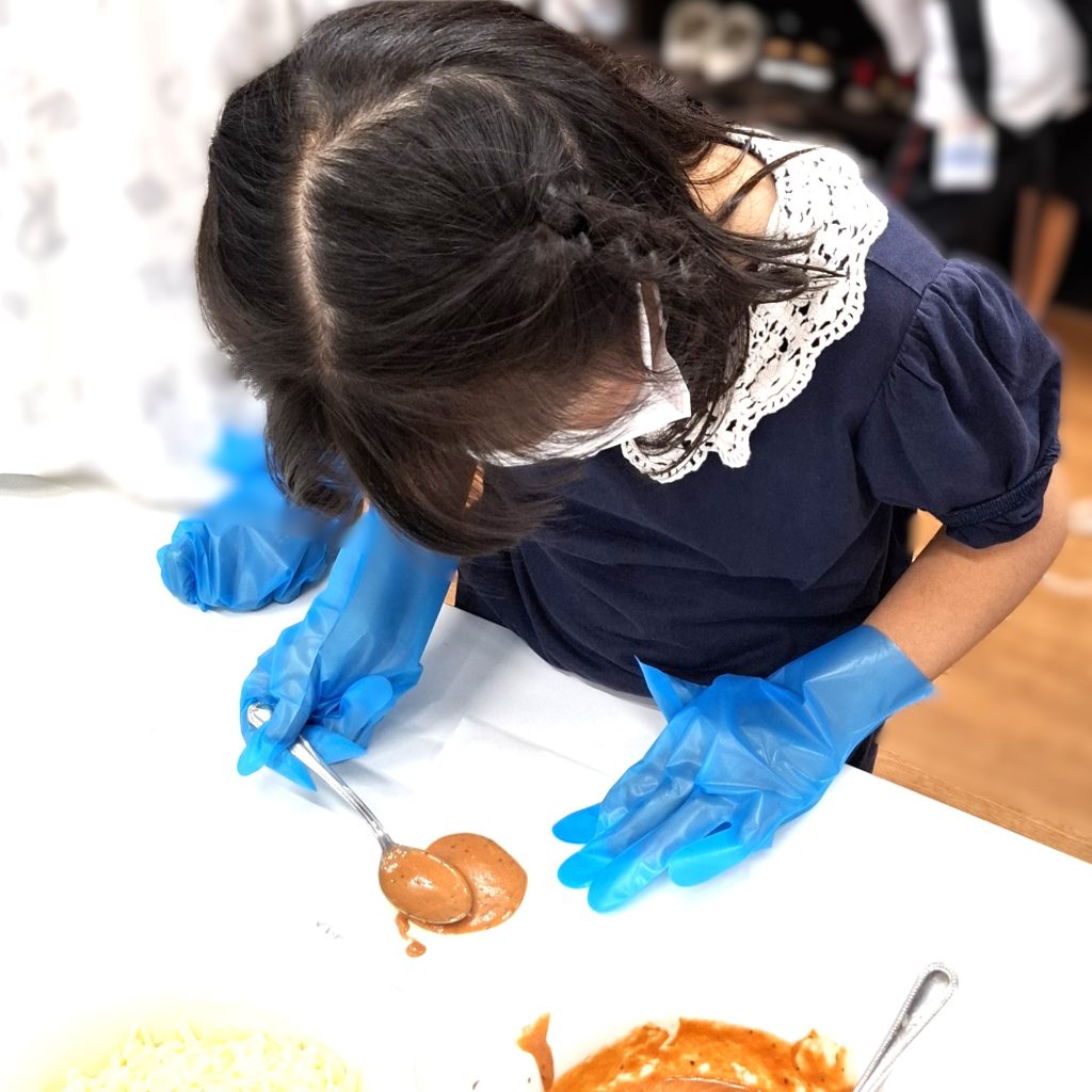 ちょっと苦手な具材があるお友達も、今日は自分好みのピザが作れてニコニコ☺
