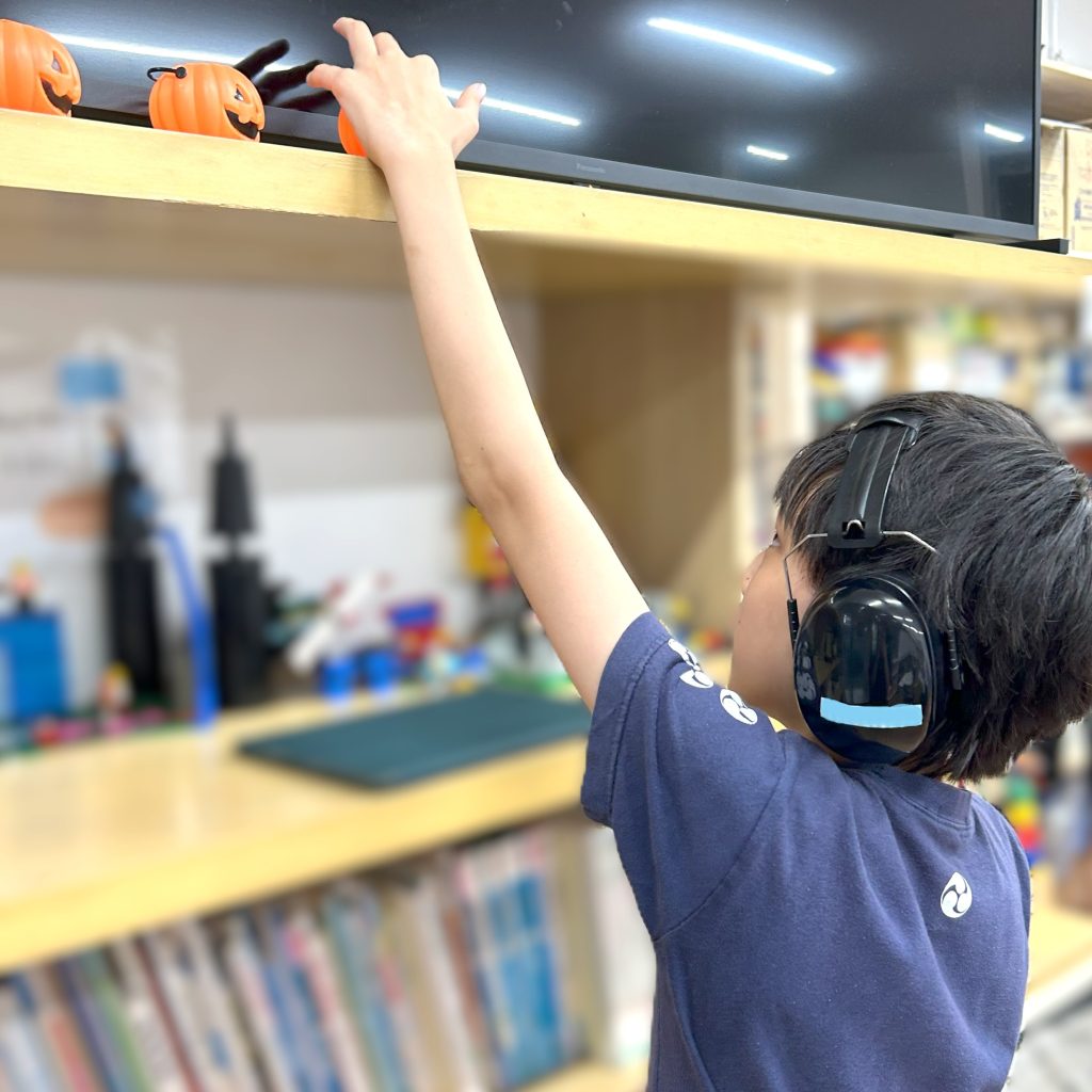 カボチャバケツを並べたり、窓にシールを貼ったり、壁に飾りをつけたりとみんなで協力して飾ってくれました!