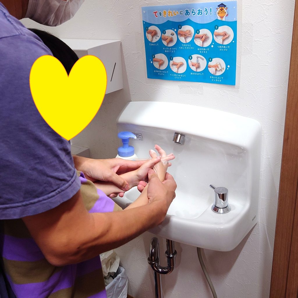 感染予防のために、今日はみんなで正しい手の洗い方をおさらいしました✋