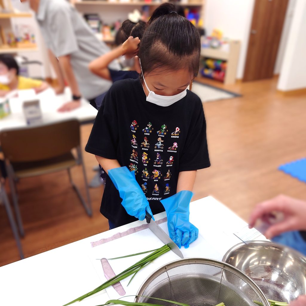 まずは具材のニラとちくわを切っていきます🔪みんなが食べやすい大きさになるようにね!