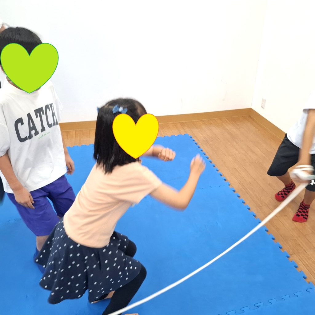 ジャンプが難しい子はゆらゆら揺れているロープを跨いだりして楽しんでくれていました♪