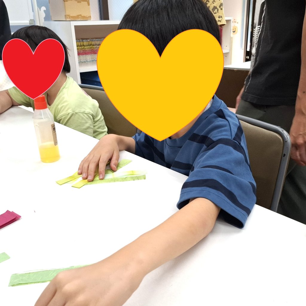 みんな、上手に輪っかを作り、のりで貼ることができていました♪