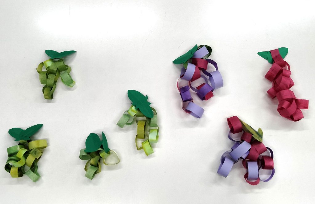 今日は秋の季節ということで紙を使ってブドウを作りました!🍇