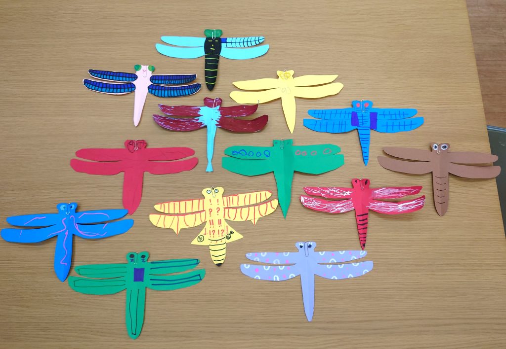 今日は色画用紙でトンボを作って飛ばしました(^^)/