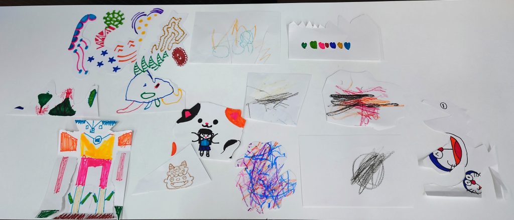 「えー?」とみんな初めは戸惑っていましたが、すぐにいろんな形を切り始めました✂