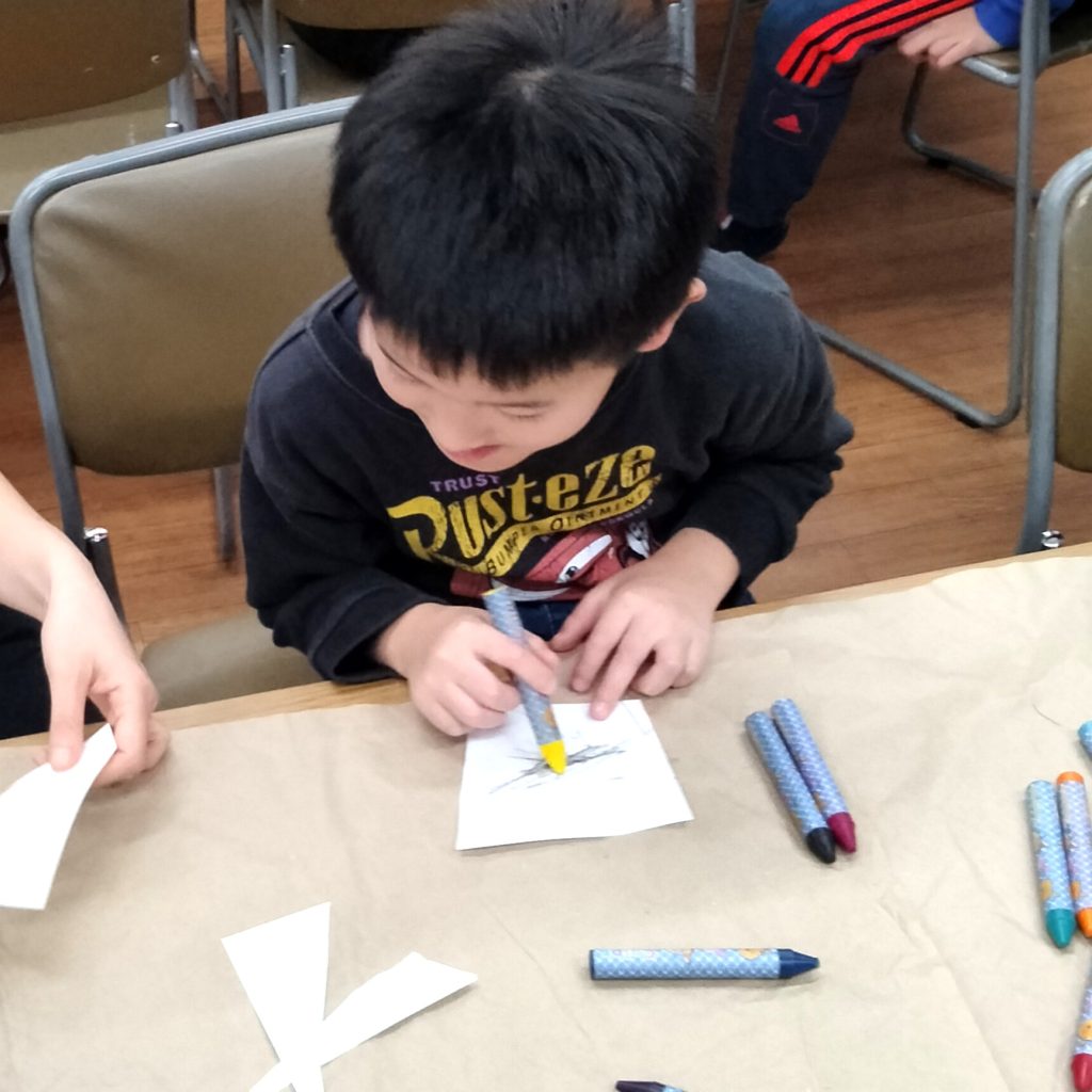 何を作るかを決めずに好きな形に画用紙をチョキチョキ切って、好きな色を塗ってみよう🎵