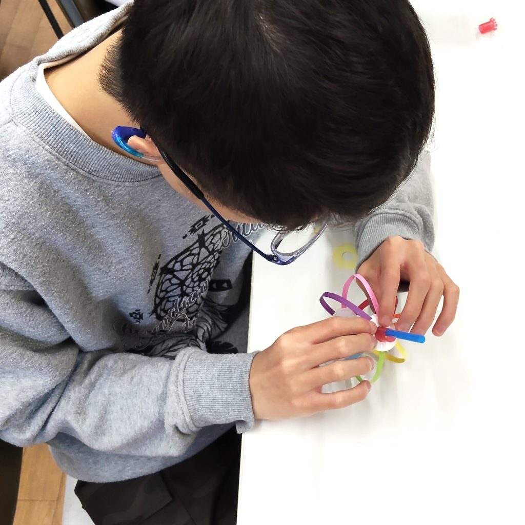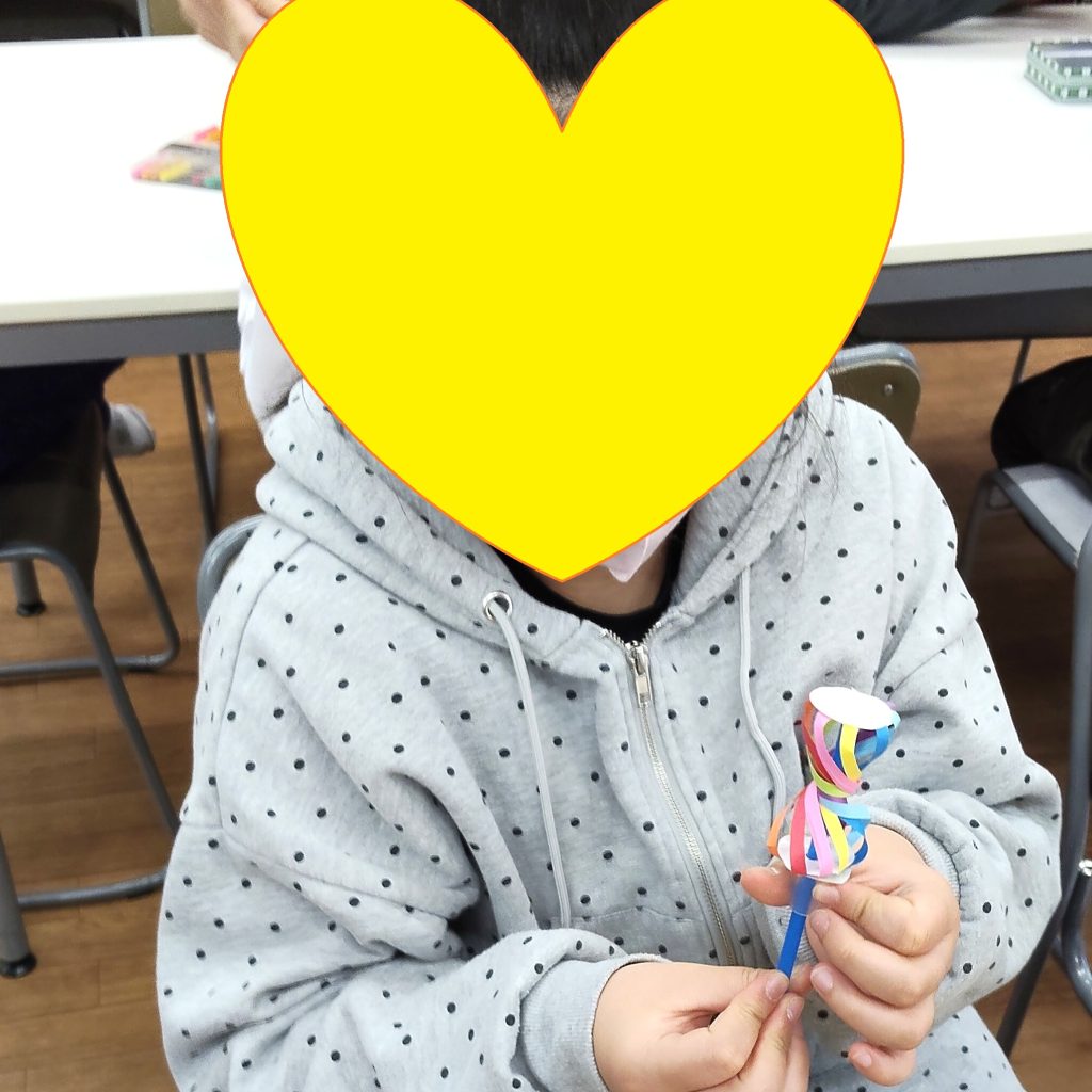 今日の工作はくるくるレインボーです!