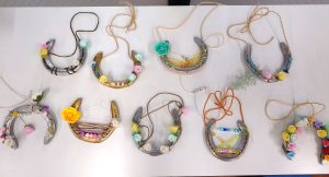 こんにちは! ハーブです🌿 今日は蹄鉄アートをしました! 蹄鉄に紐を通して、好きな飾りで華やかにしていきます✨ お花やビーズで個性的な作品が出来上がりました☺️ ぜひおうちに飾ってね!